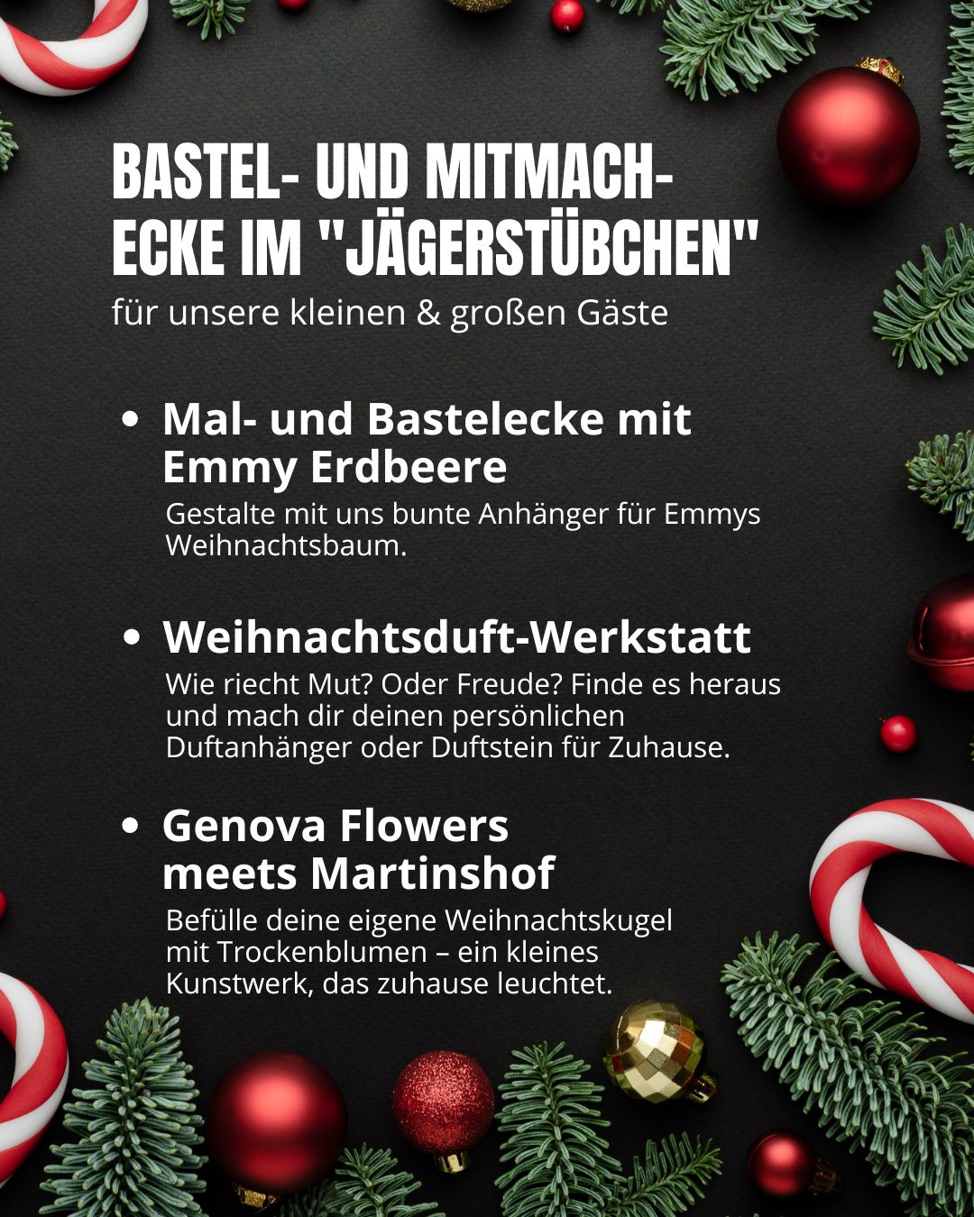 Am ersten Dezemberwochenende ist es wieder soweit: Der Martinshof verwandelt sich in unseren gemütlichen Weihnachtsmarkt.